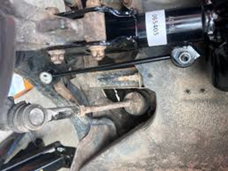 2.Essai sur route Conduisez lentement (10 à 20 mph) sur des ralentisseurs ou sur une chaussée accidentée. → Symptôme typique : Un bruit métallique fort ou un hochet provenant de l'avant ou de l'arrière (généralement des deux côtés). Remarque : le bruit peut ressembler à de mauvais supports de jambe de force ou à des bagues de bras de commande – confirmez toujours avec le test de tremblement.